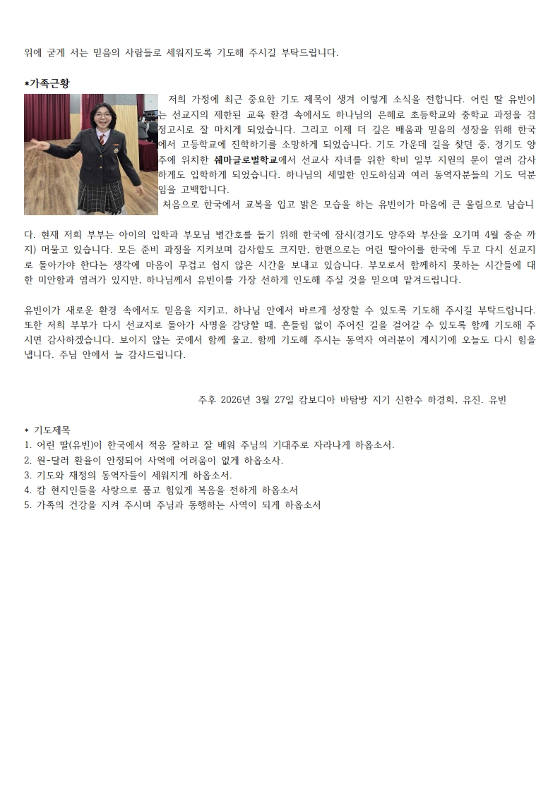 [해외선교소식] <캄보디아> 신한수 선교사님 소식입니다.