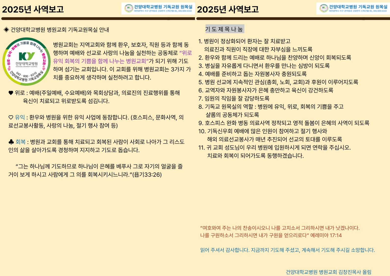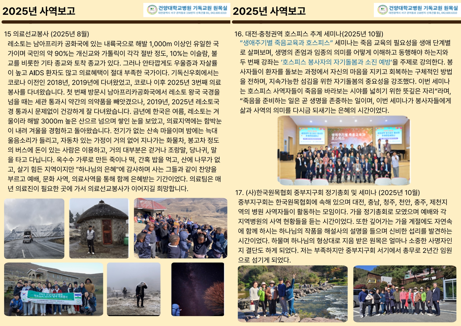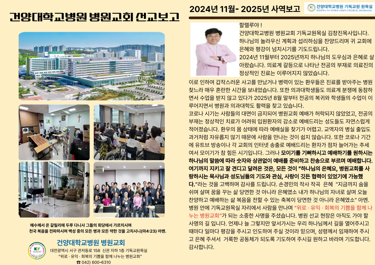 [국내선교소식] 건양대학교병원 병원교회 소식입니다.