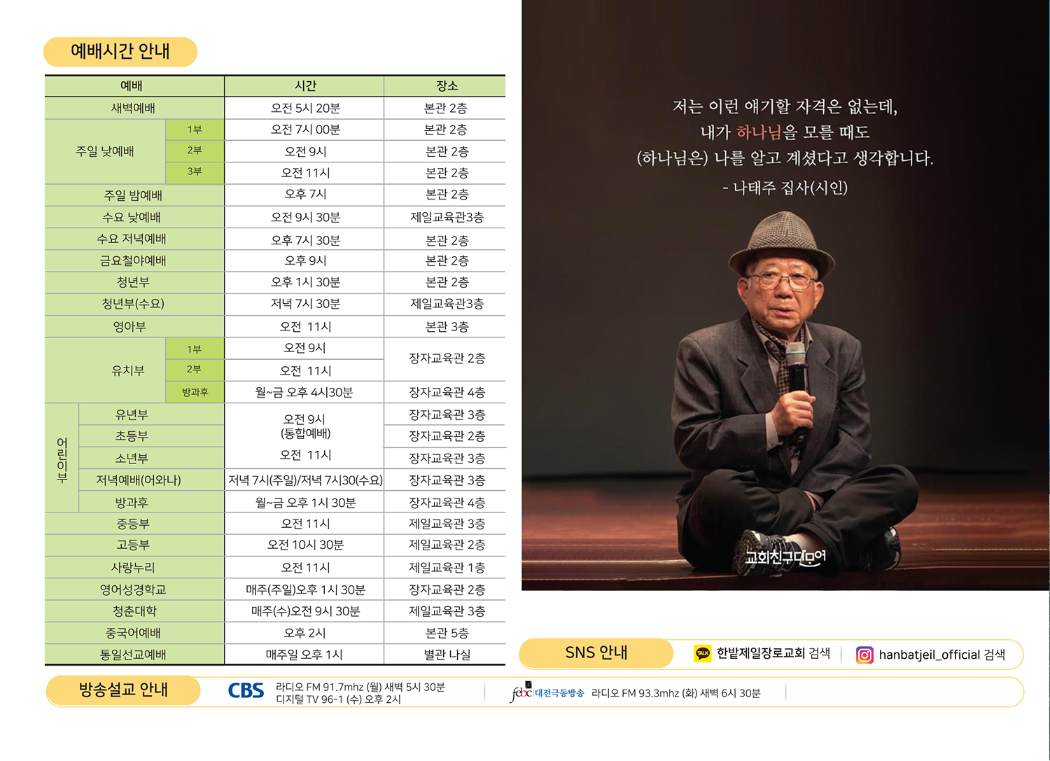 한밭제일교회는 주님만을 기쁘시게 해 드리는 교회입니다.