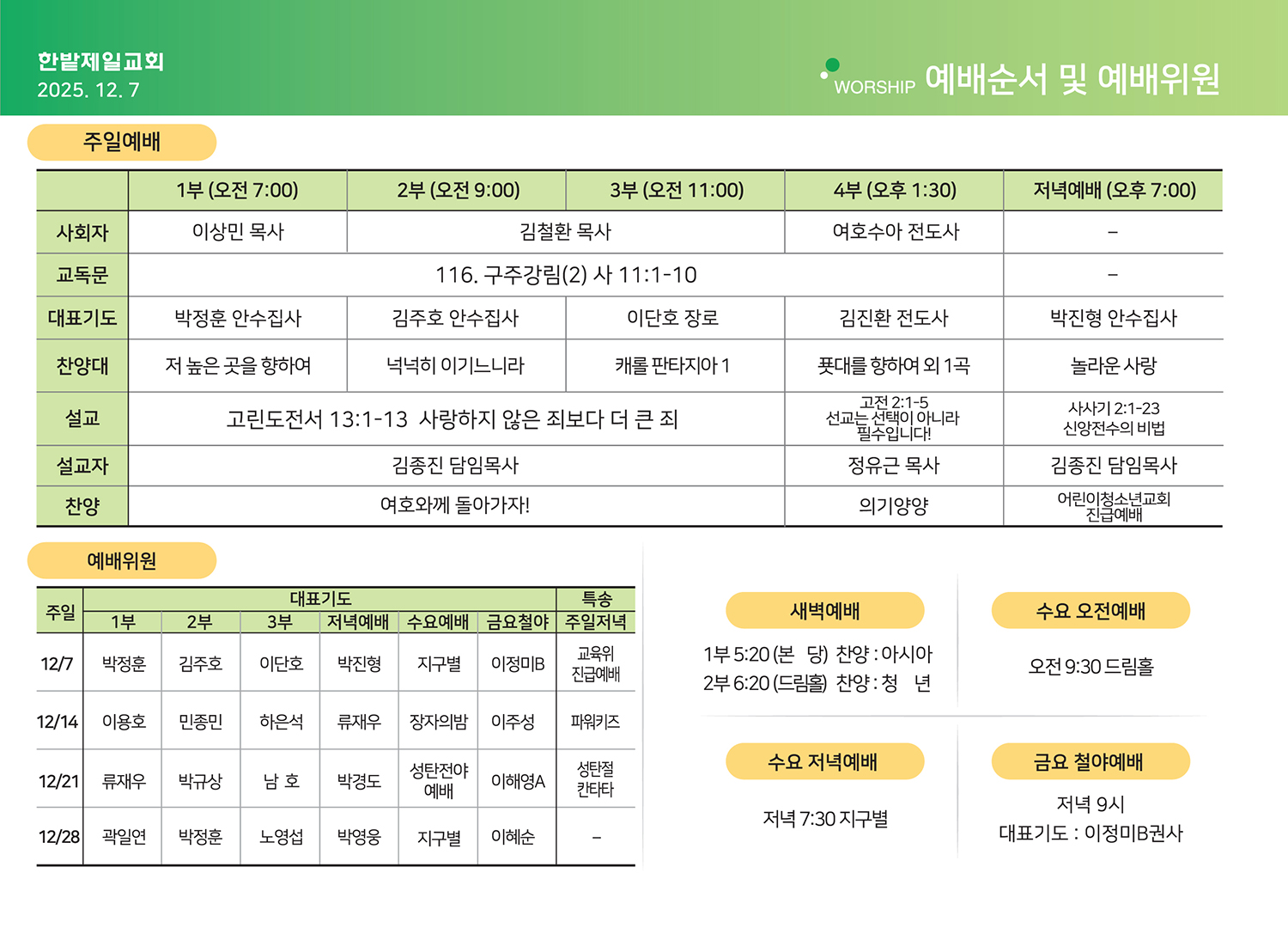 한밭제일교회는 주님만을 기쁘시게 해 드리는 교회입니다.