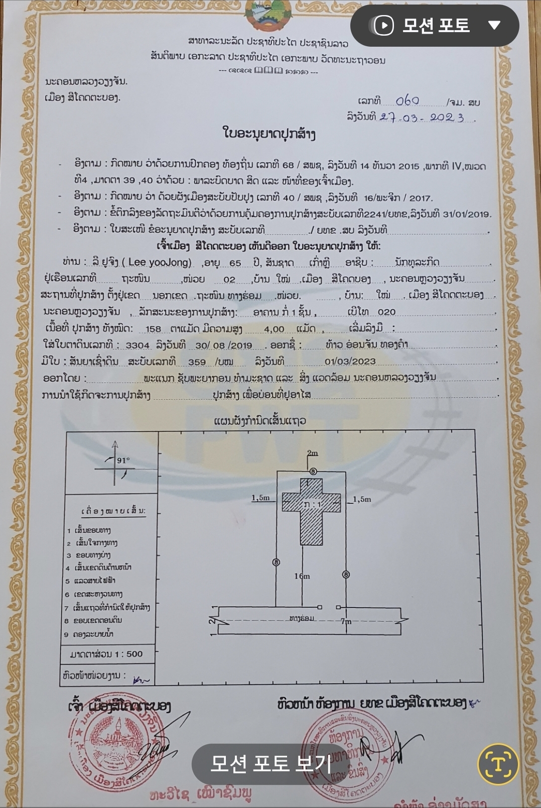 건축신고 등록증은 한국인 저 이름으로 신고 등록되어 있고 토지등록은 현지인 시골교회 목사님 명의로 등록되었지만 당장이라도 현지인에게는 이전등록 가능한 서류를 보관중입니다.