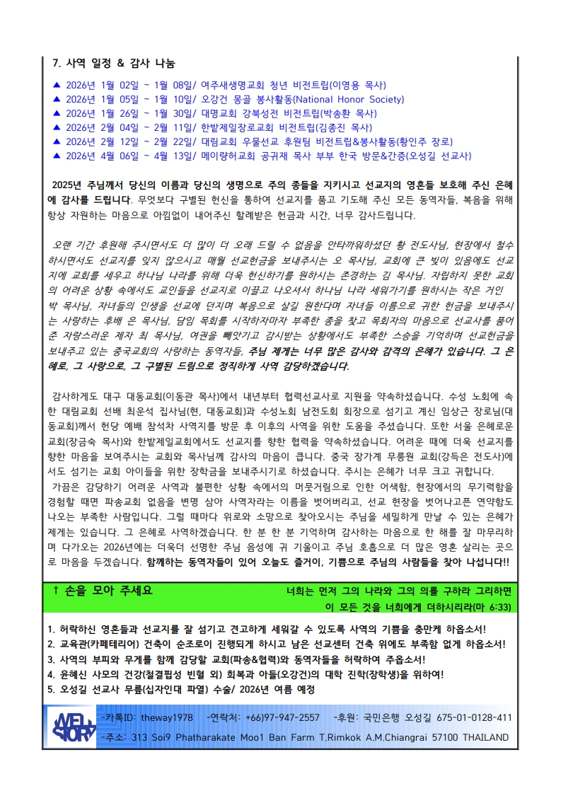[해외선교소식] <태국> 오성길 선교사님 소식입니다.