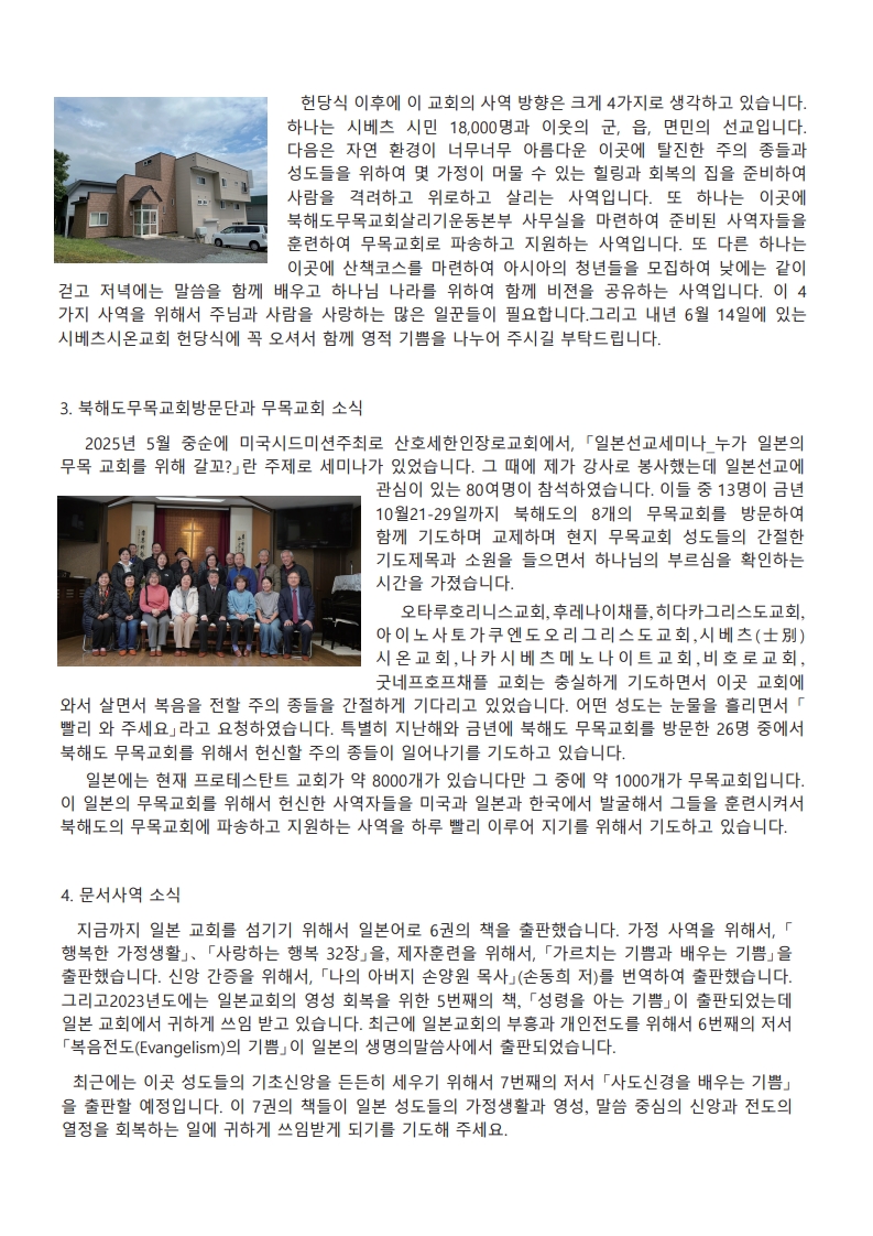 [해외선교소식] <일본> 박영기 선교사님 소식입니다.