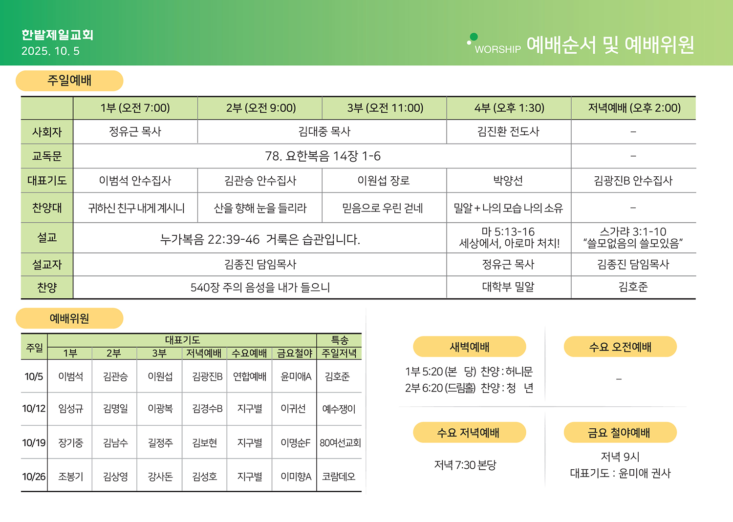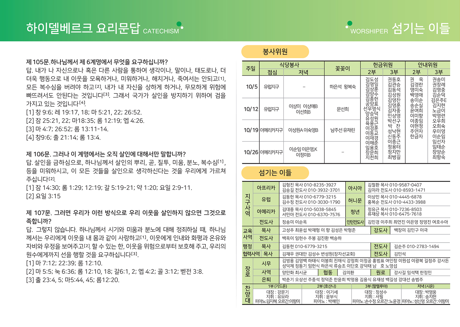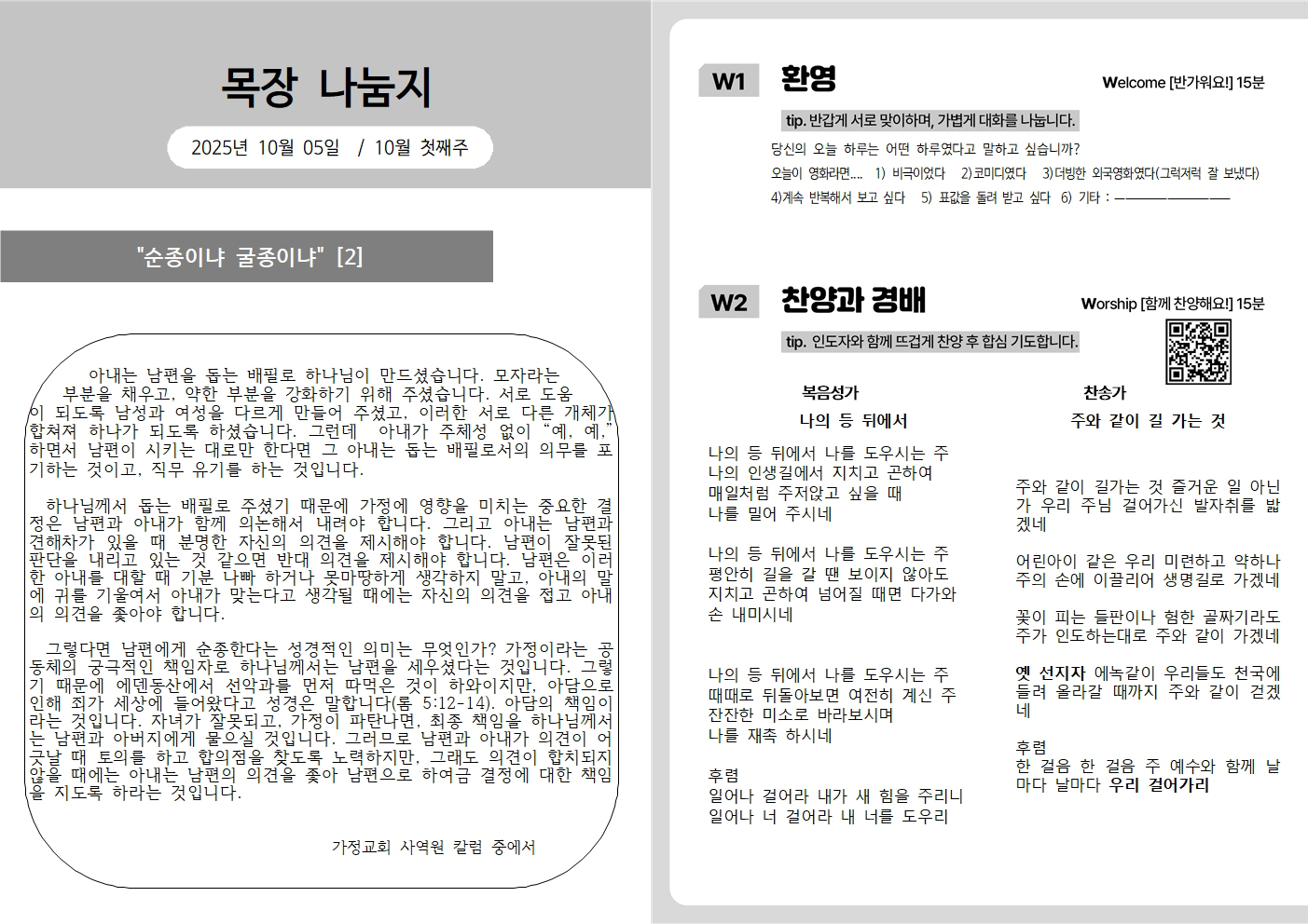 2025년 10월 5일 주보, 목장나눔지