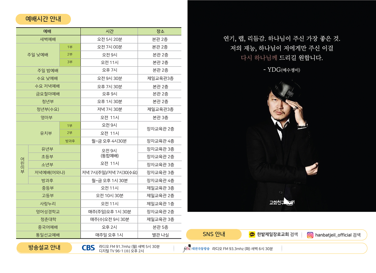 한밭제일교회는 주님만을 기쁘시게 해 드리는 교회입니다.