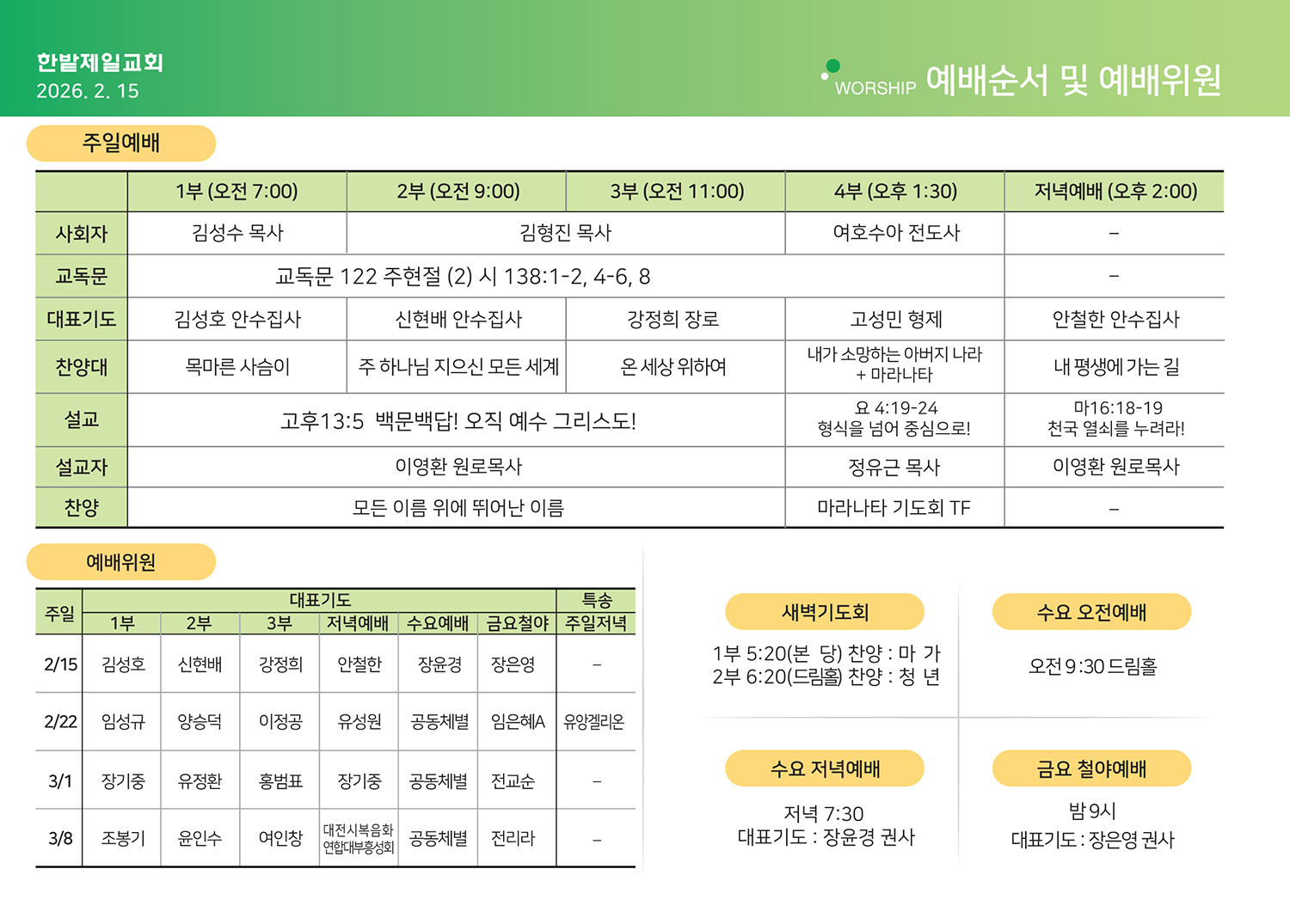 한밭제일교회는 주님만을 기쁘시게 해 드리는 교회입니다.