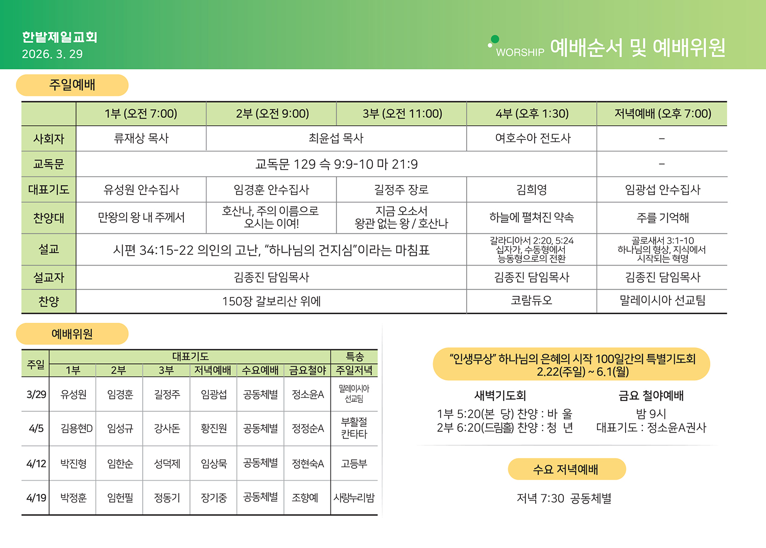 2026년 3월 29일 주보, 목장나눔지
