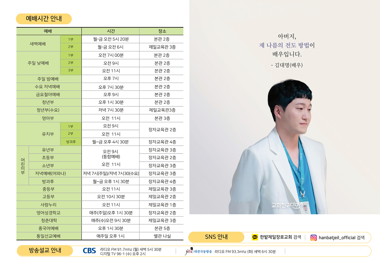 예배시간 안내