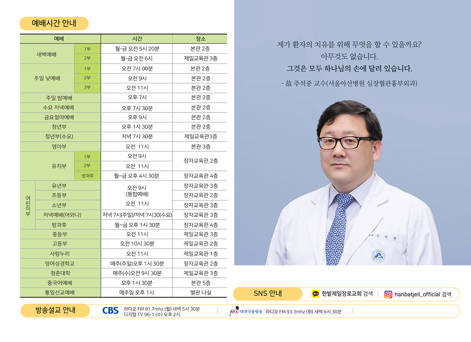 예배시간 안내