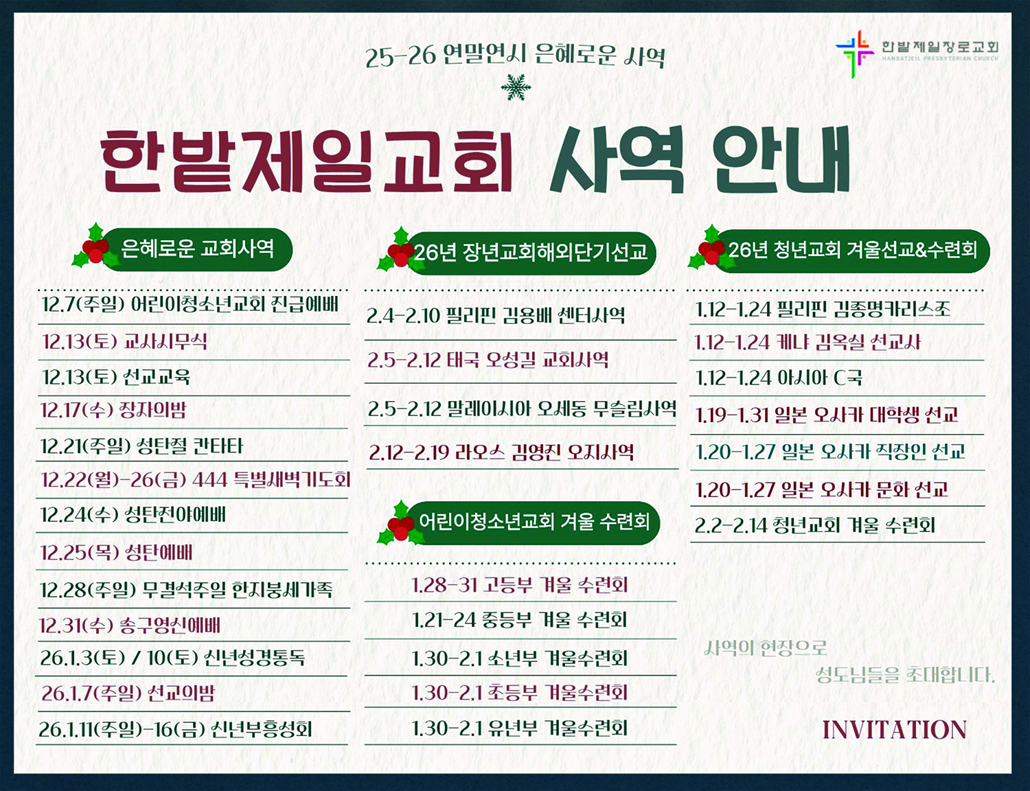 한밭제일교회는 주님만을 기쁘시게 해 드리는 교회입니다.