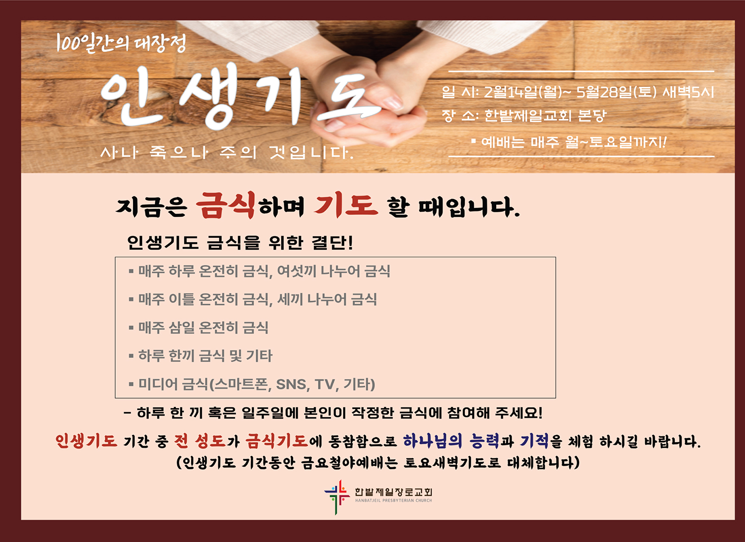 한밭제일교회는 주님만을 기쁘시게 해 드리는 교회입니다.