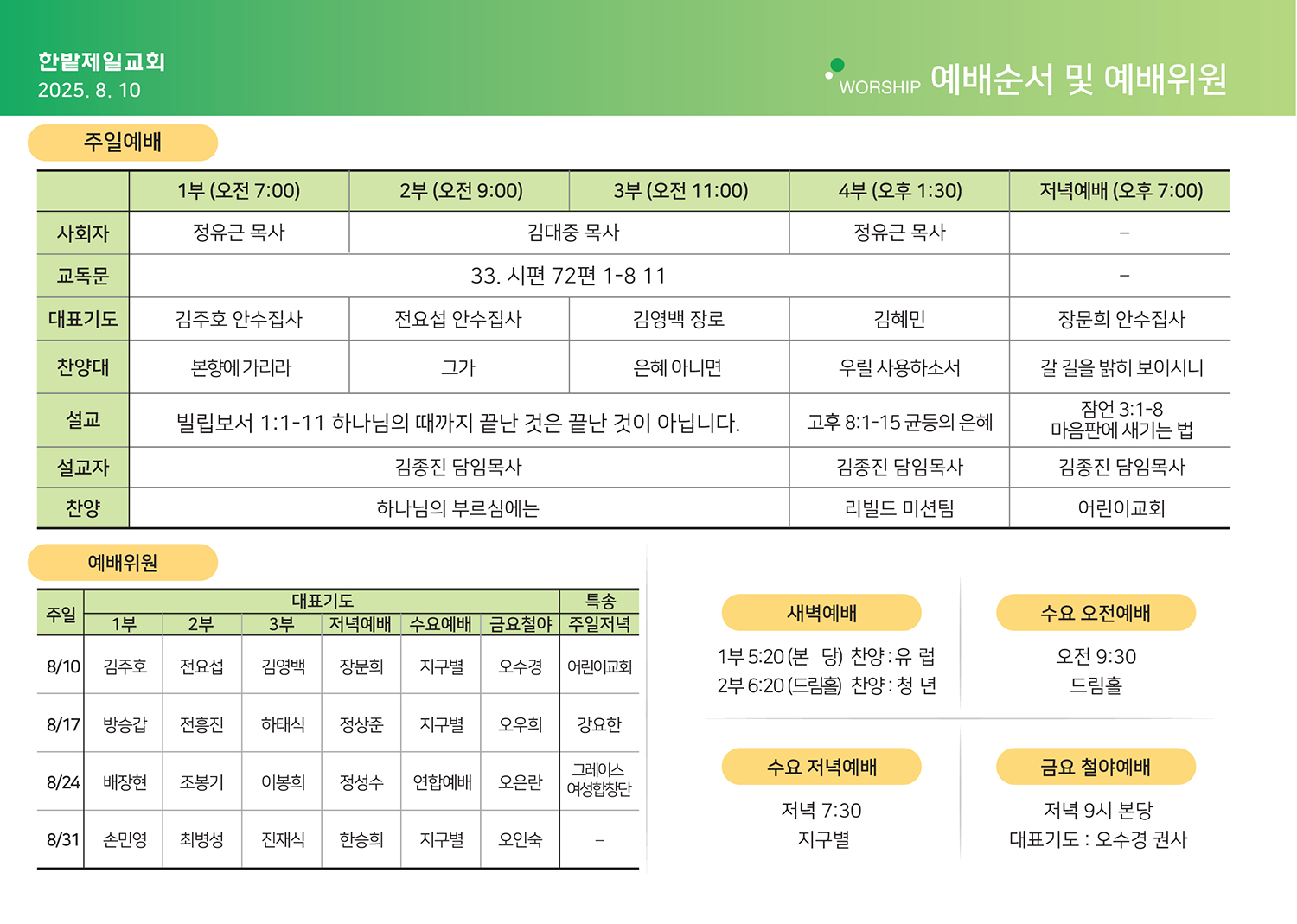 한밭제일교회는 주님만을 기쁘시게 해 드리는 교회입니다.