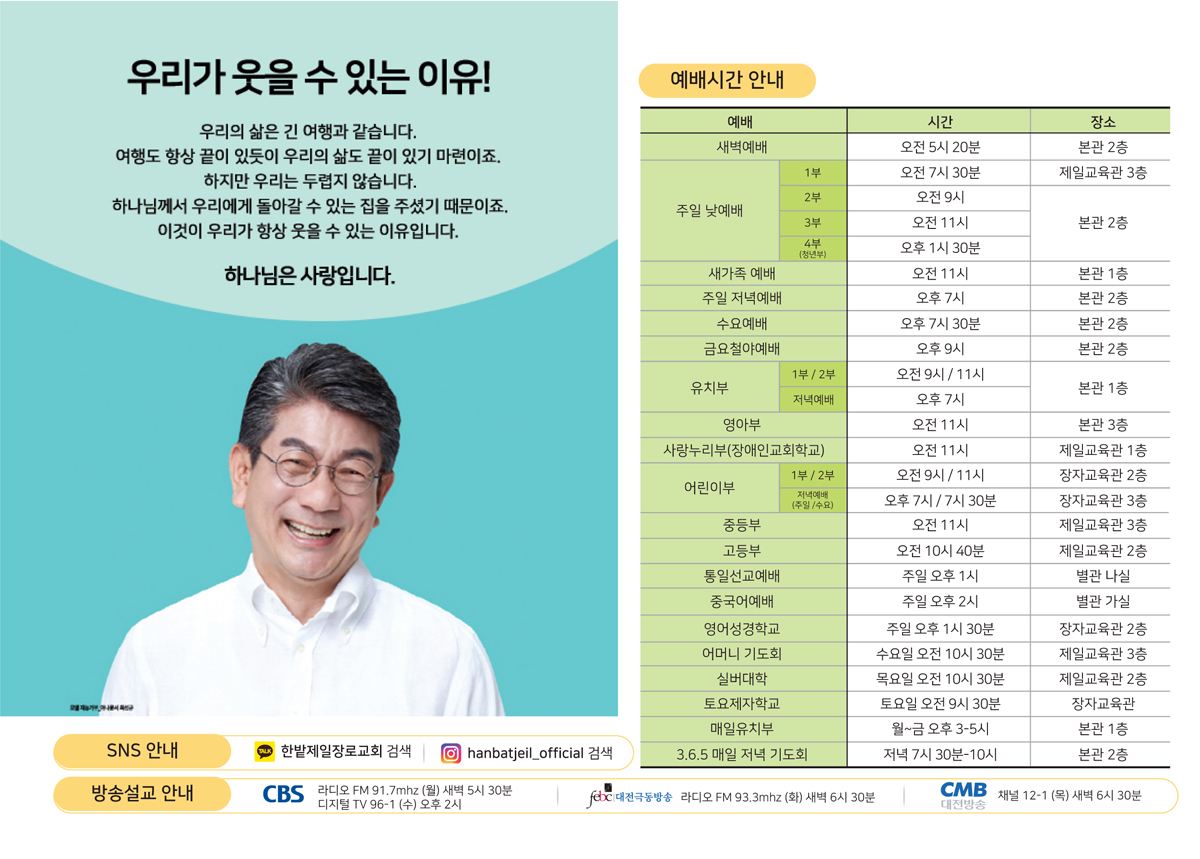 한밭제일교회는 주님만을 기쁘시게 해 드리는 교회입니다.