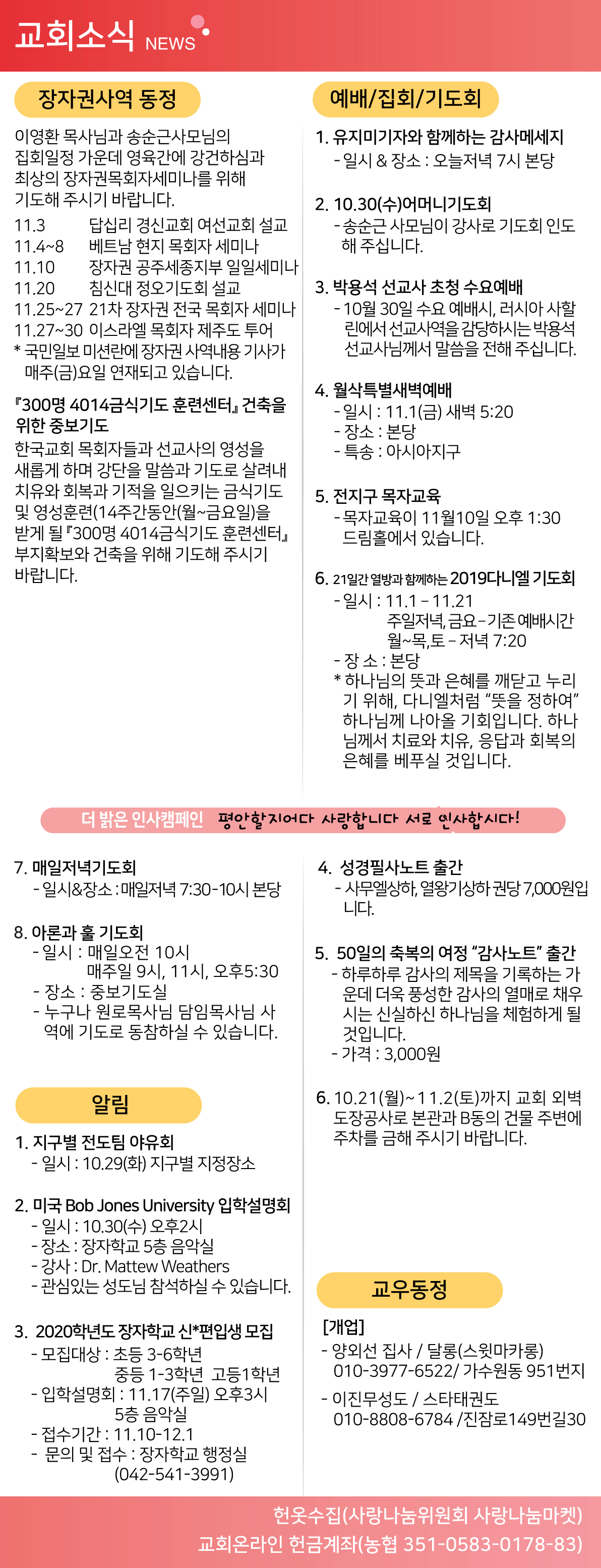 2019년 10월 27일 교회소식