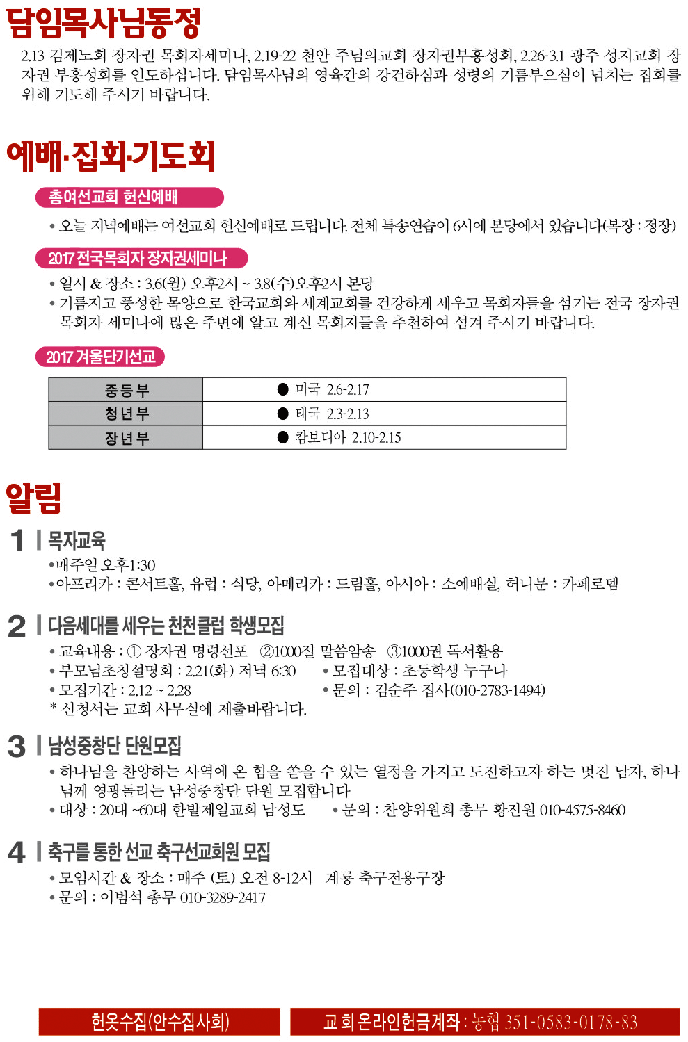 2017년 2월 12일 교회소식