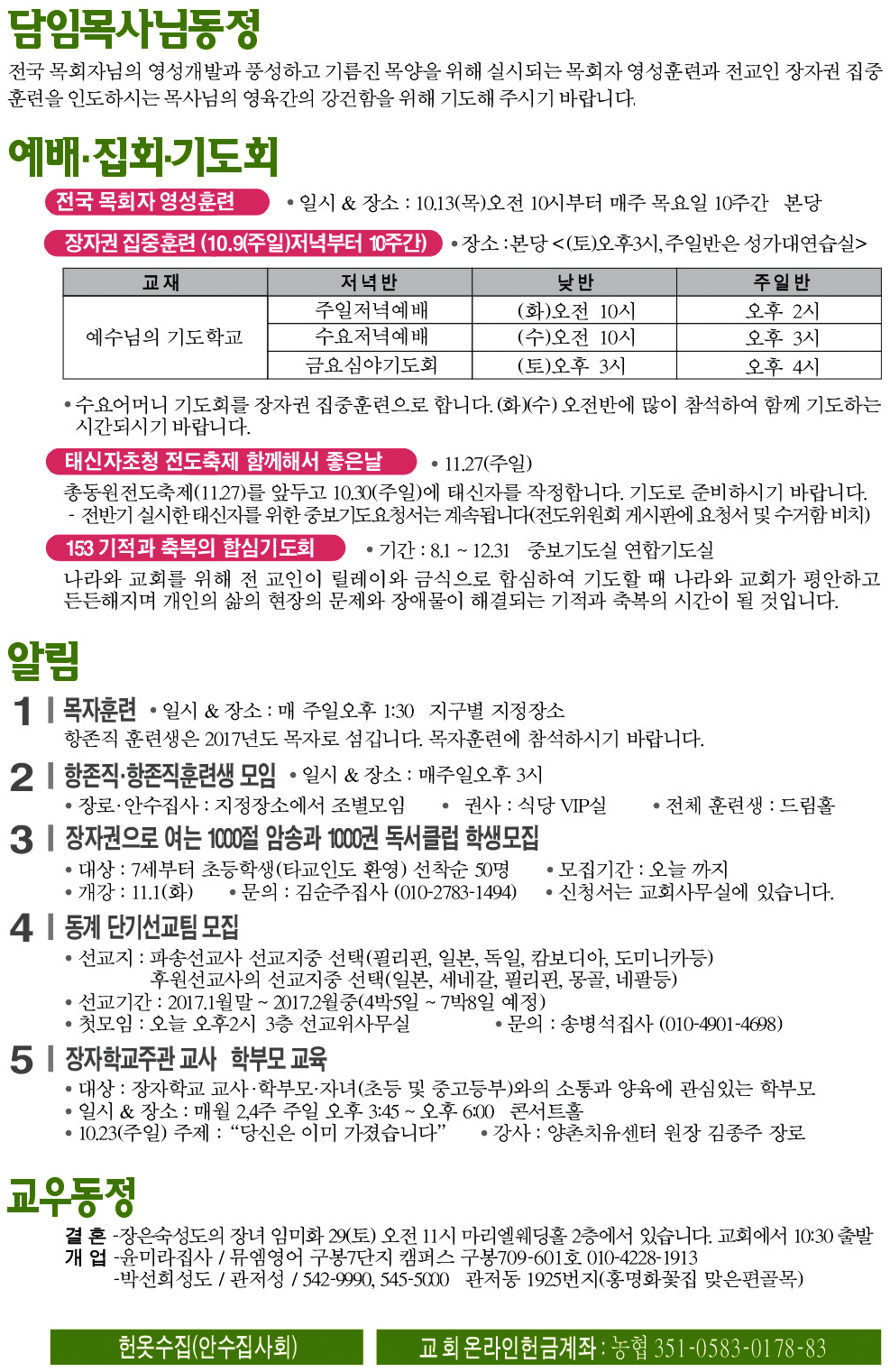 2016년 10월 23일 교회소식