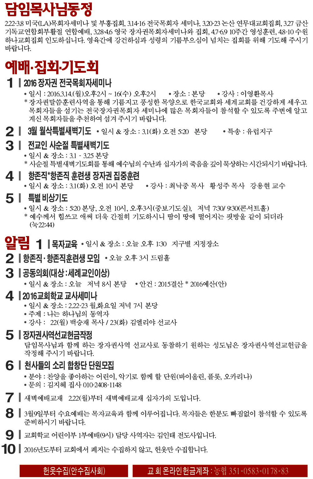 2016년 2월 21일 교회소식