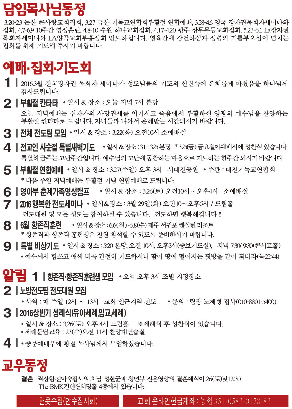 2016년 3월 20일 교회소식