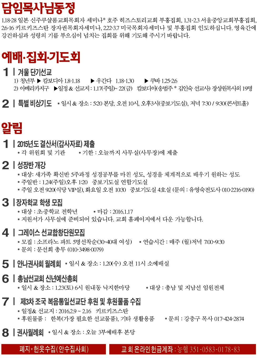 2016년 1월 17일 교회소식