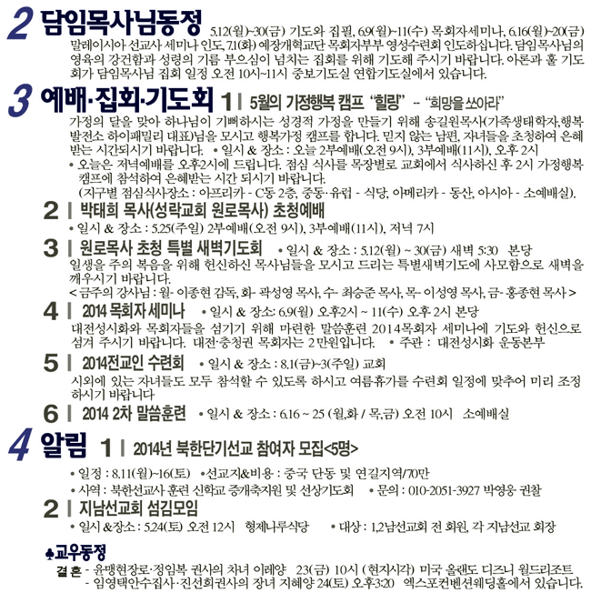 2014년 5월 18일 교회소식