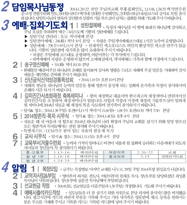 2013년 12월 22일 교회소식