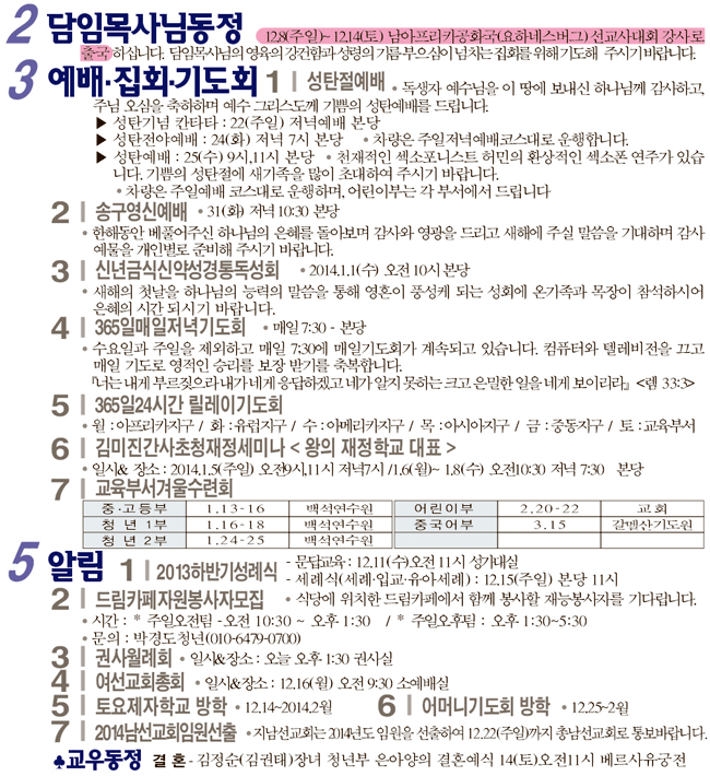 2013년 12월 8일 교회소식