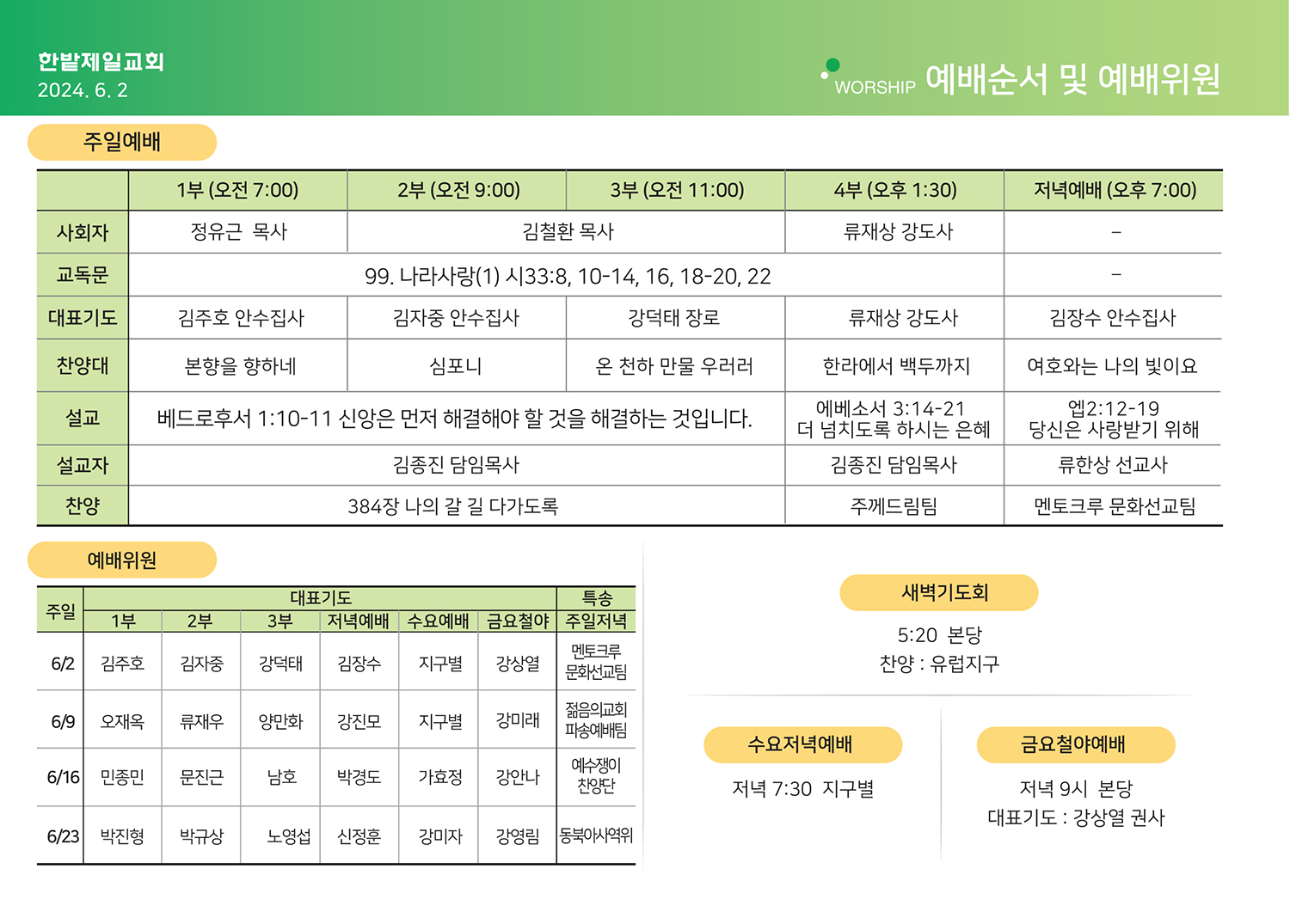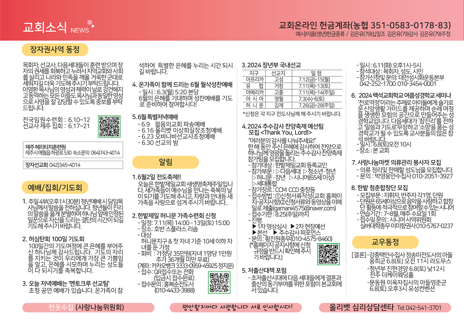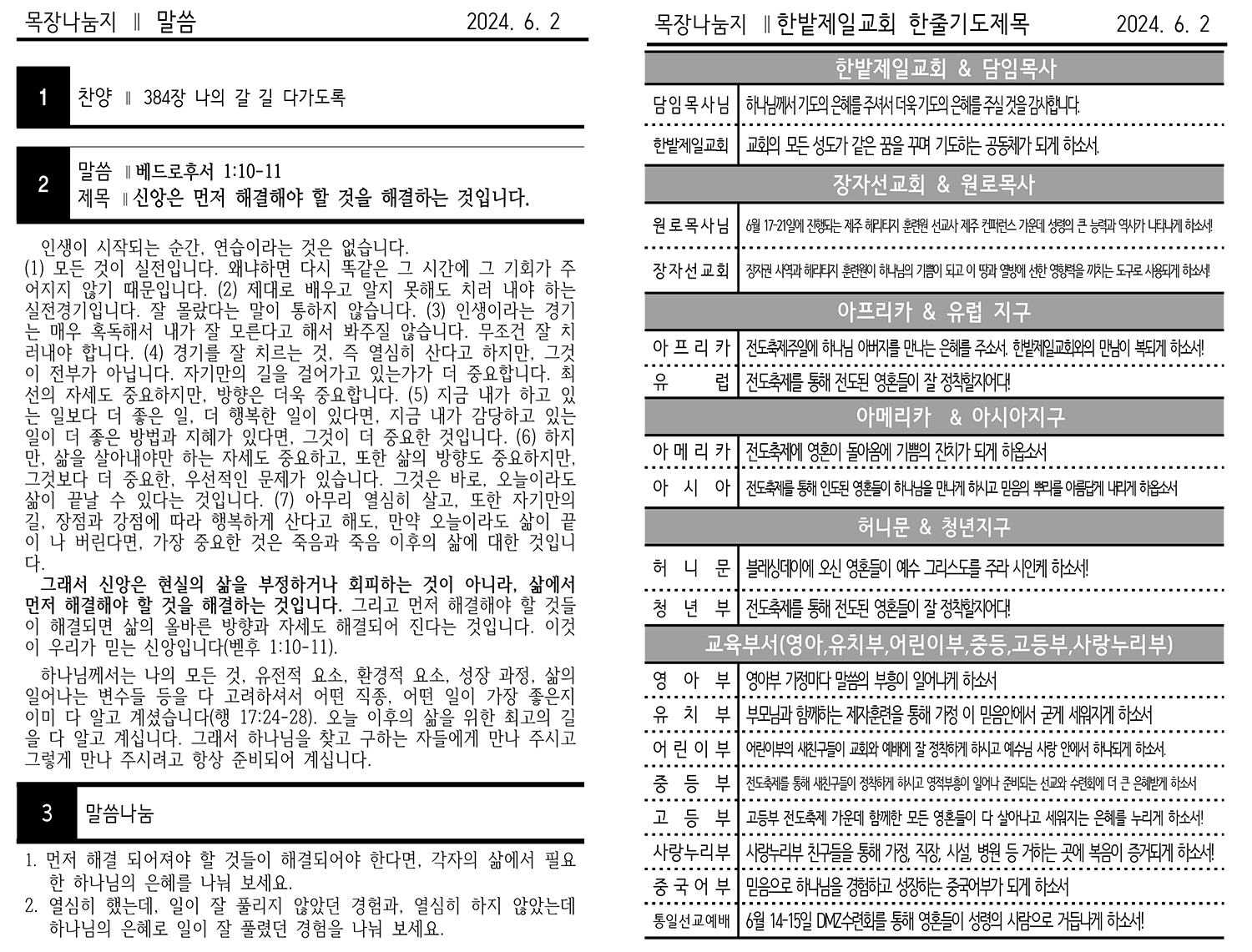 2024년 6월 2일 주보, 목장교재