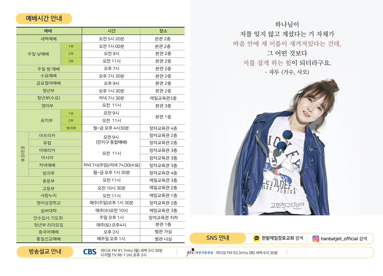 예배시간 안내