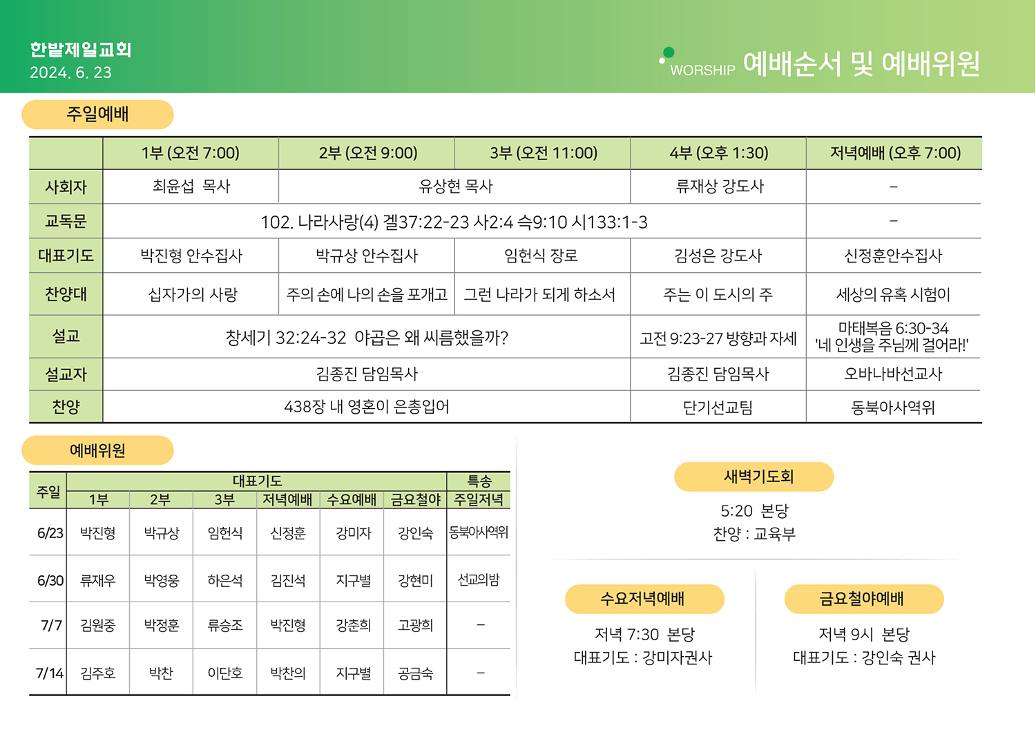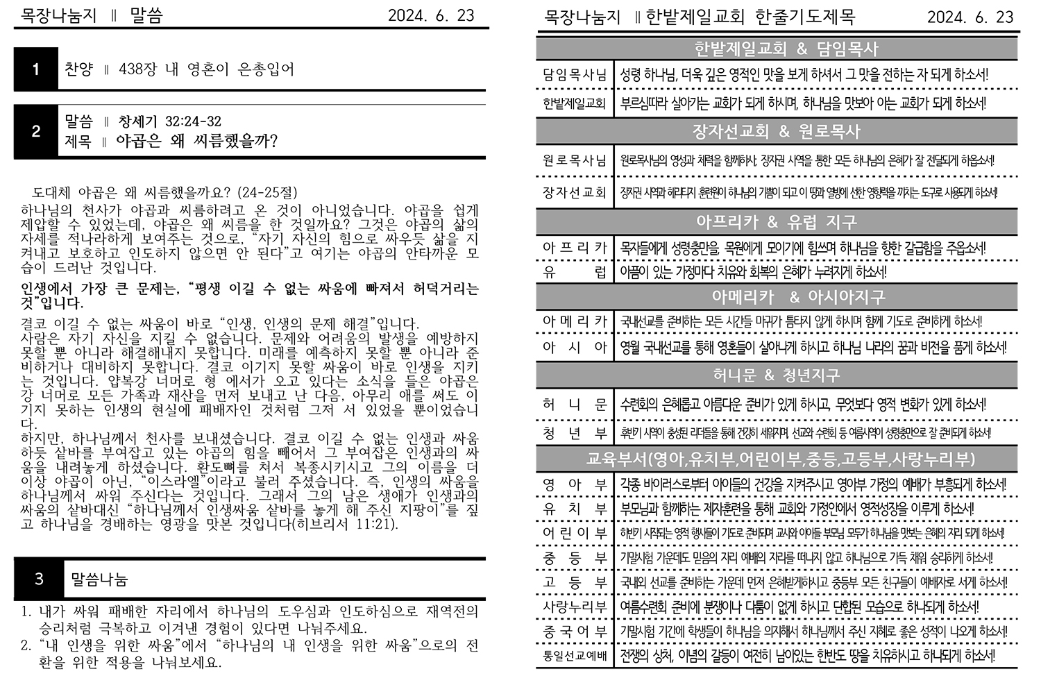 2024년 6월 23일 주보, 목장교재