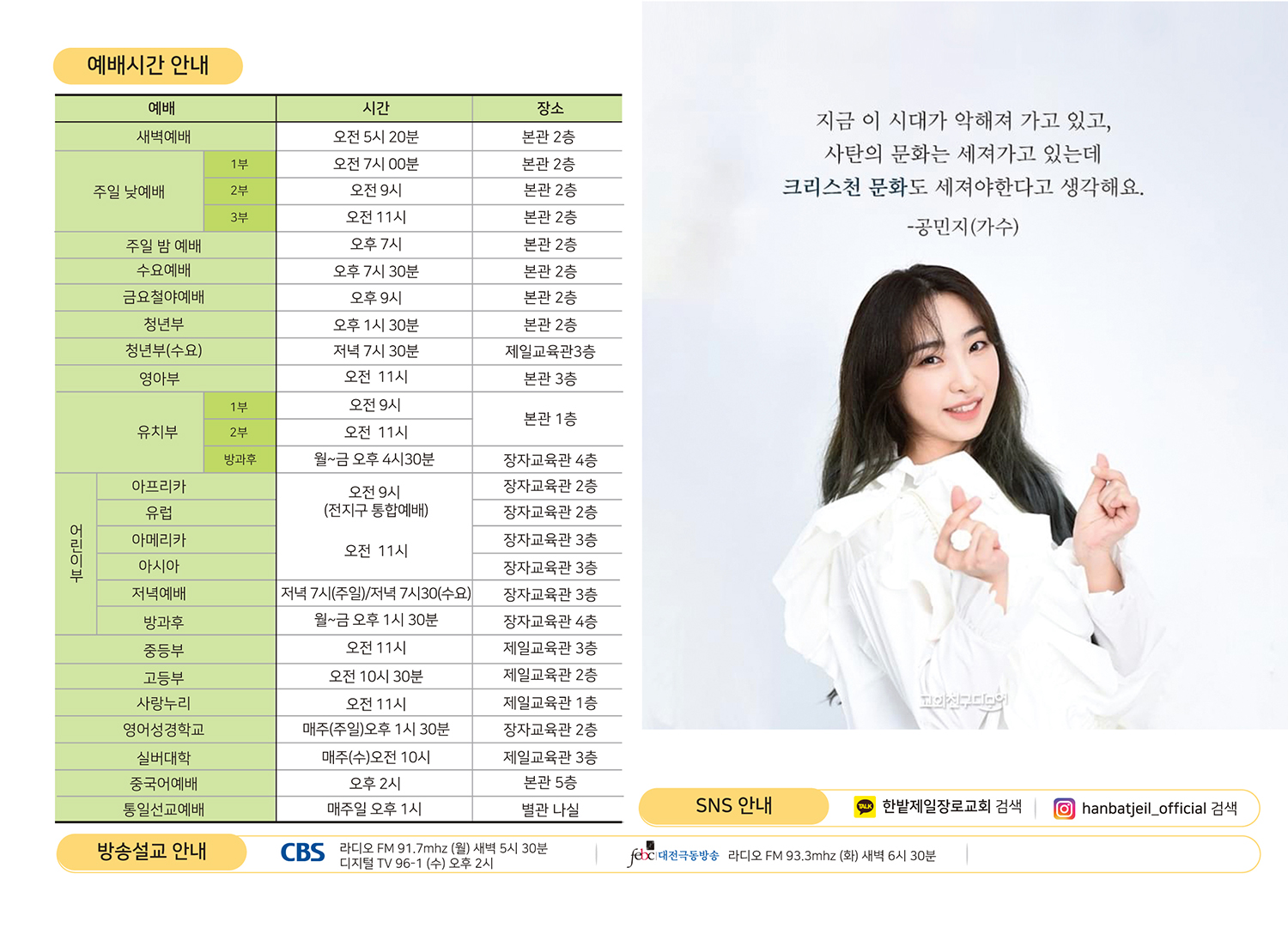 예배시간 안내