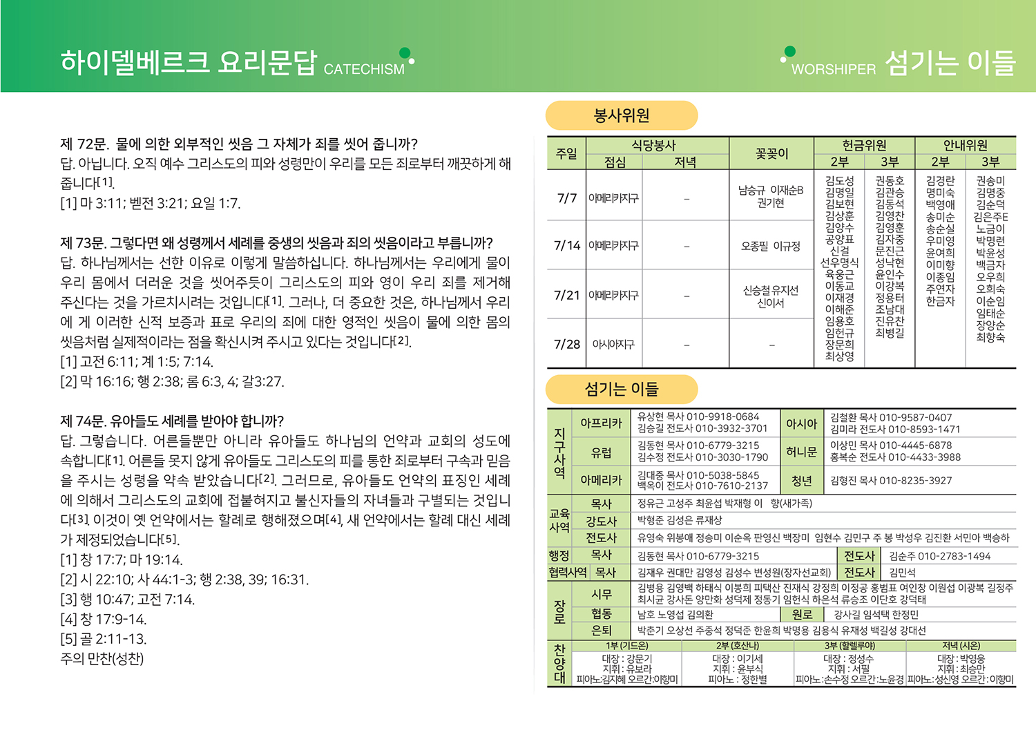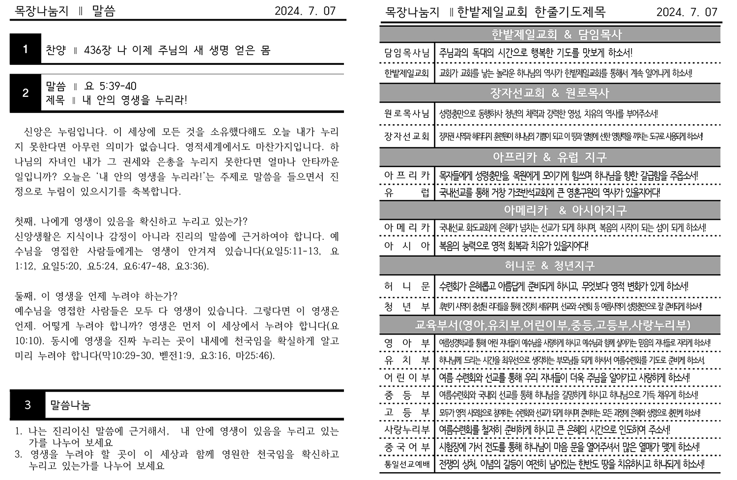 2024년 7월 7일 주보, 목장교재