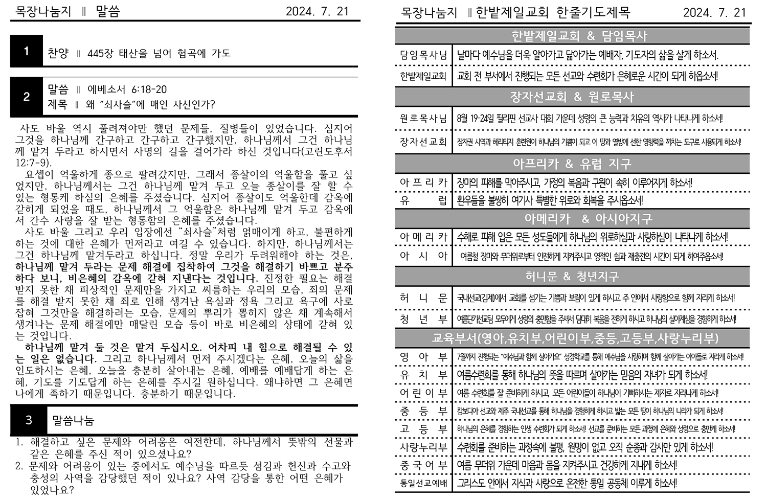 한밭제일교회는 주님만을 기쁘시게 해 드리는 교회입니다.