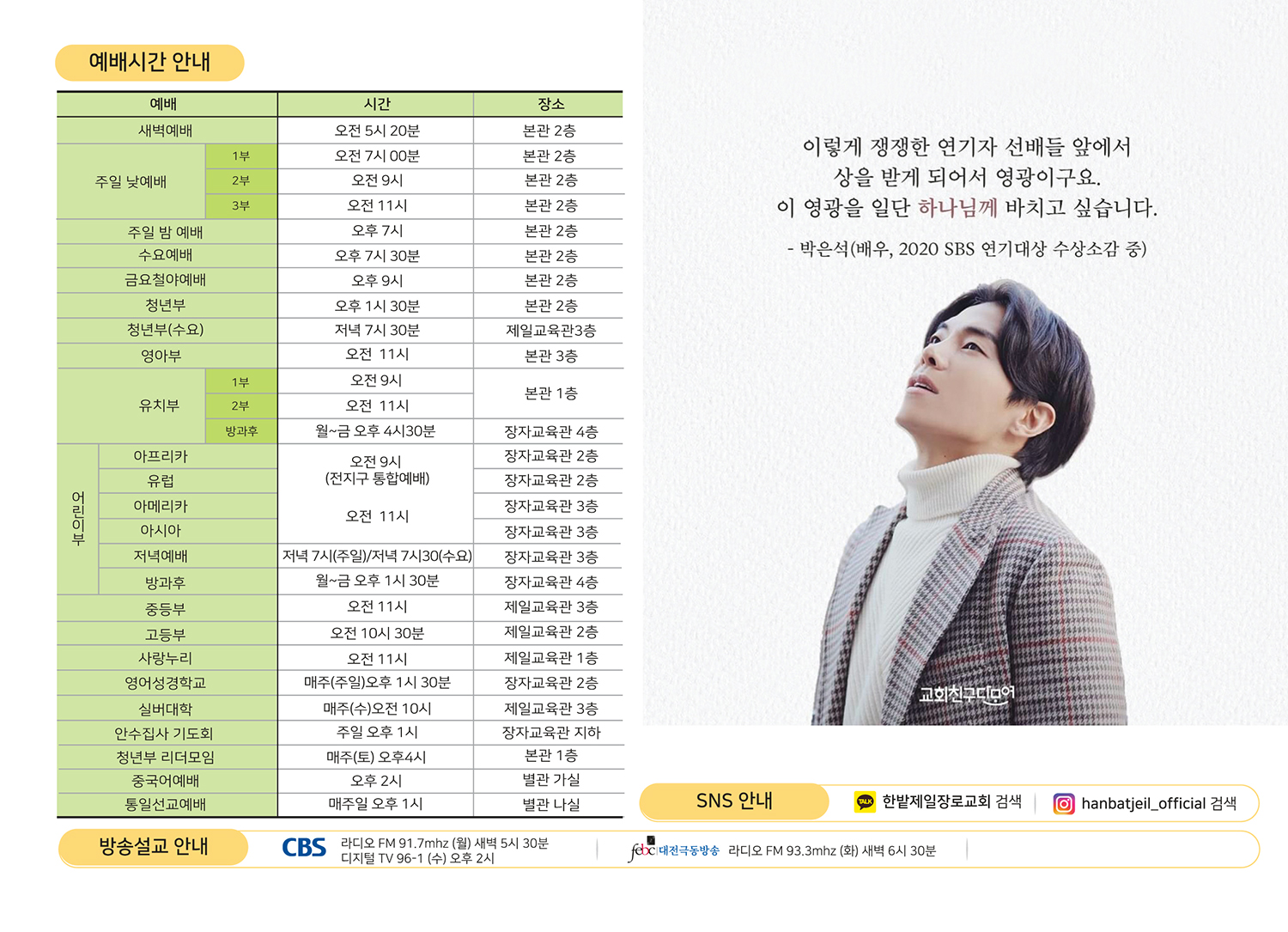 예배시간 안내