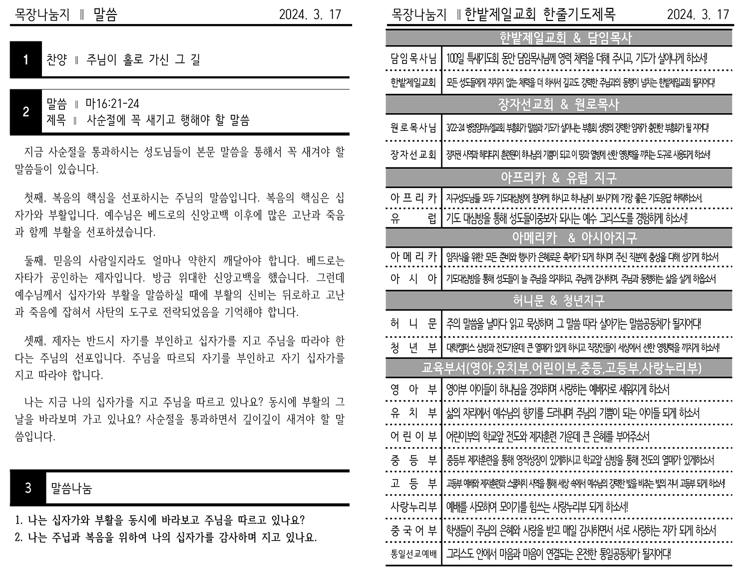 2024년 3월 17일 주보, 목장교재