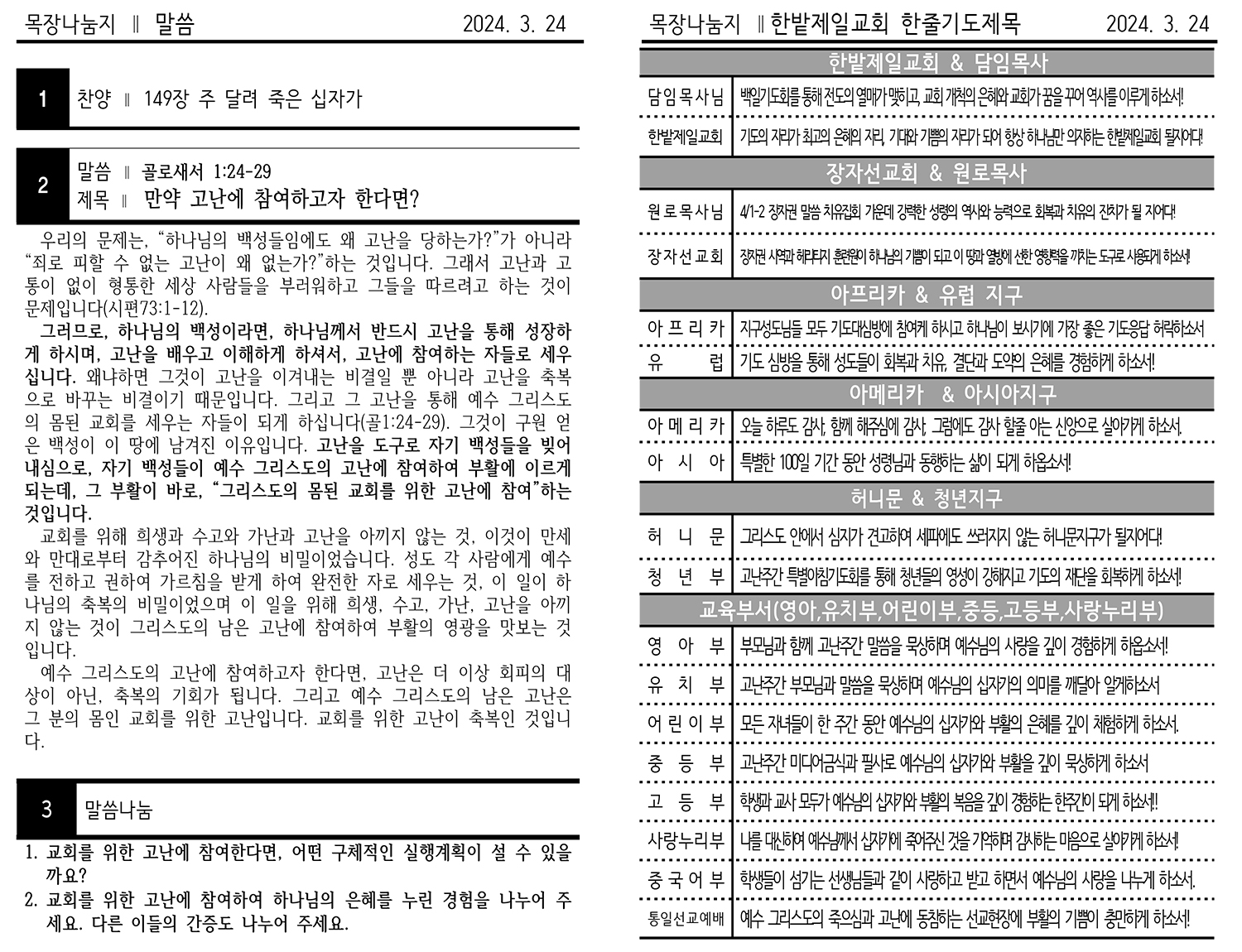 2024년 3월 24일 주보, 목장교재