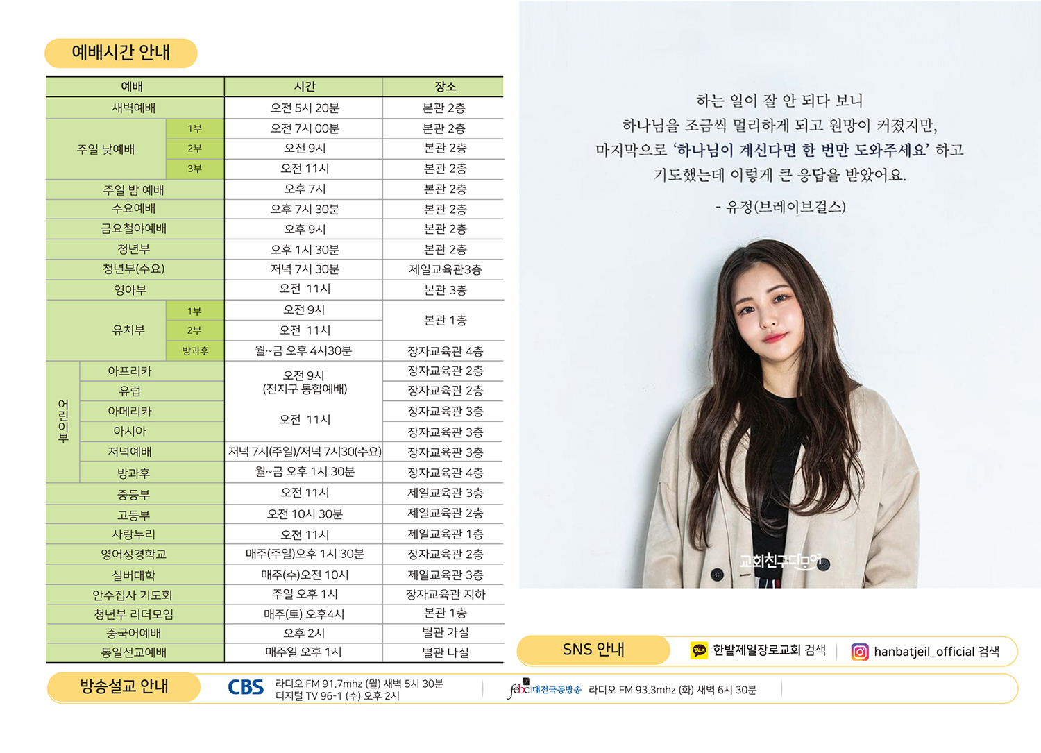 예배시간 안내
