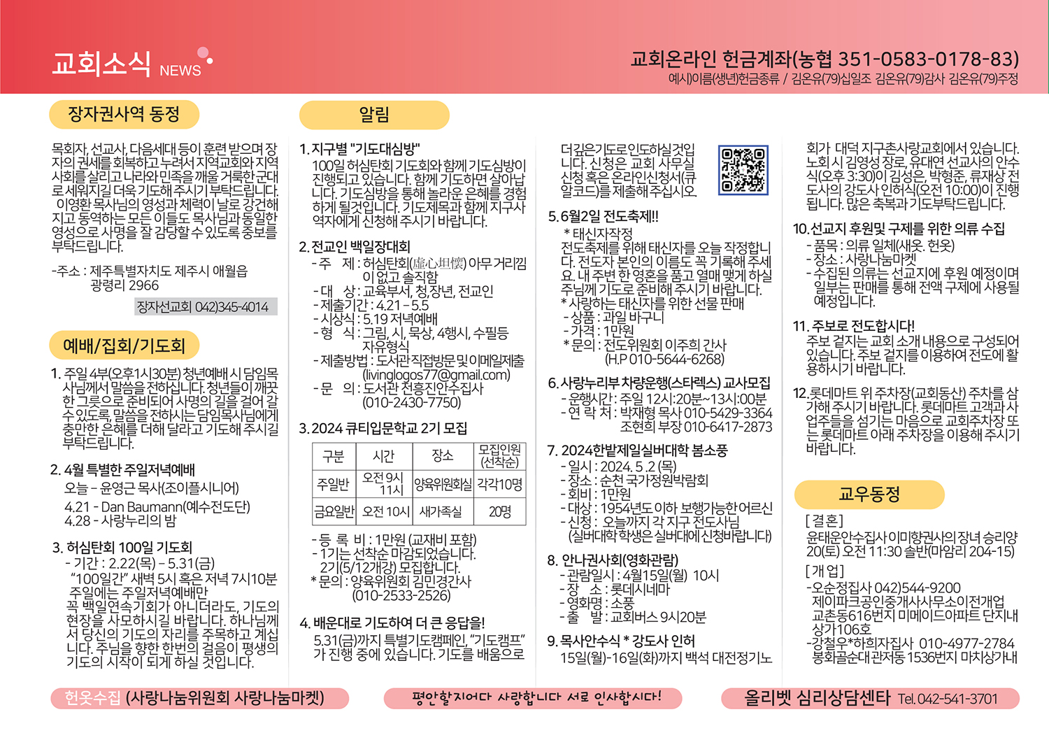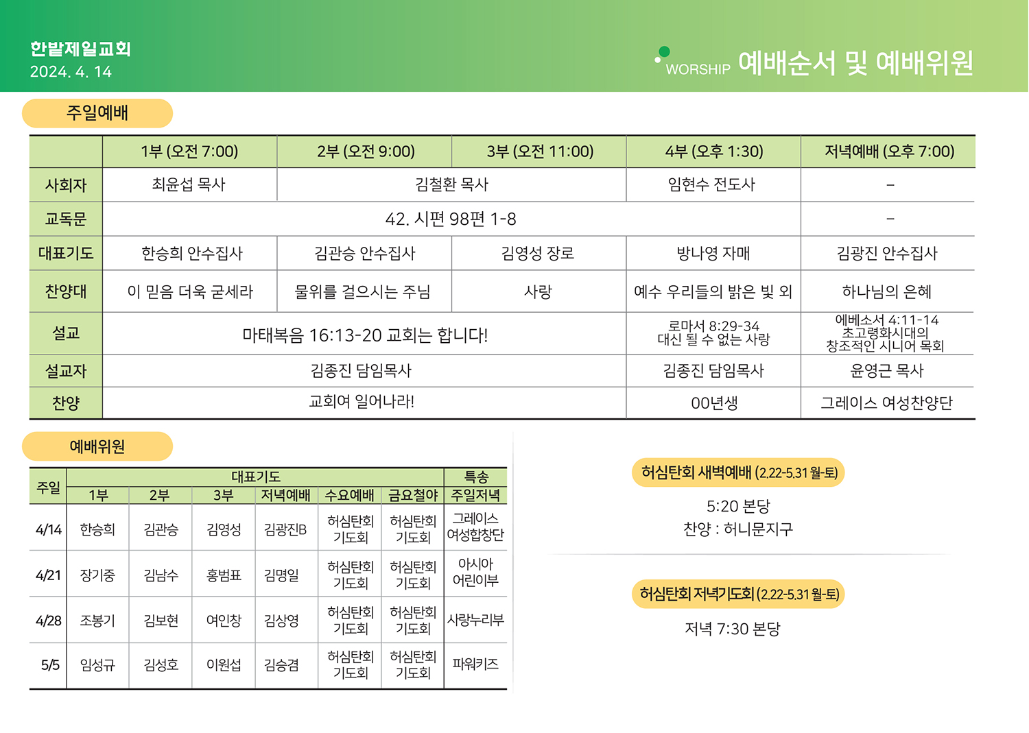 한밭제일교회는 주님만을 기쁘시게 해 드리는 교회입니다.