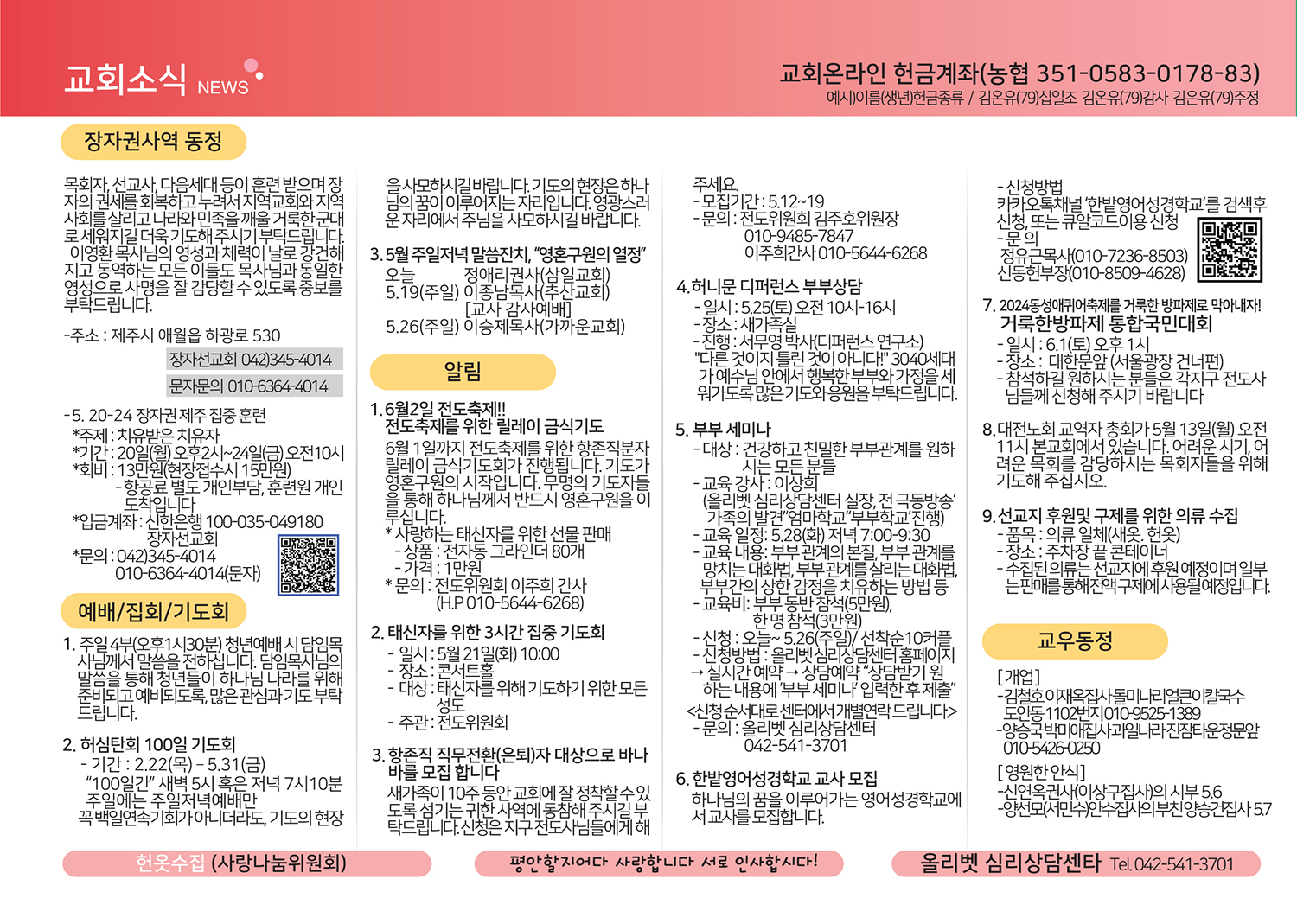 한밭제일교회는 주님만을 기쁘시게 해 드리는 교회입니다.