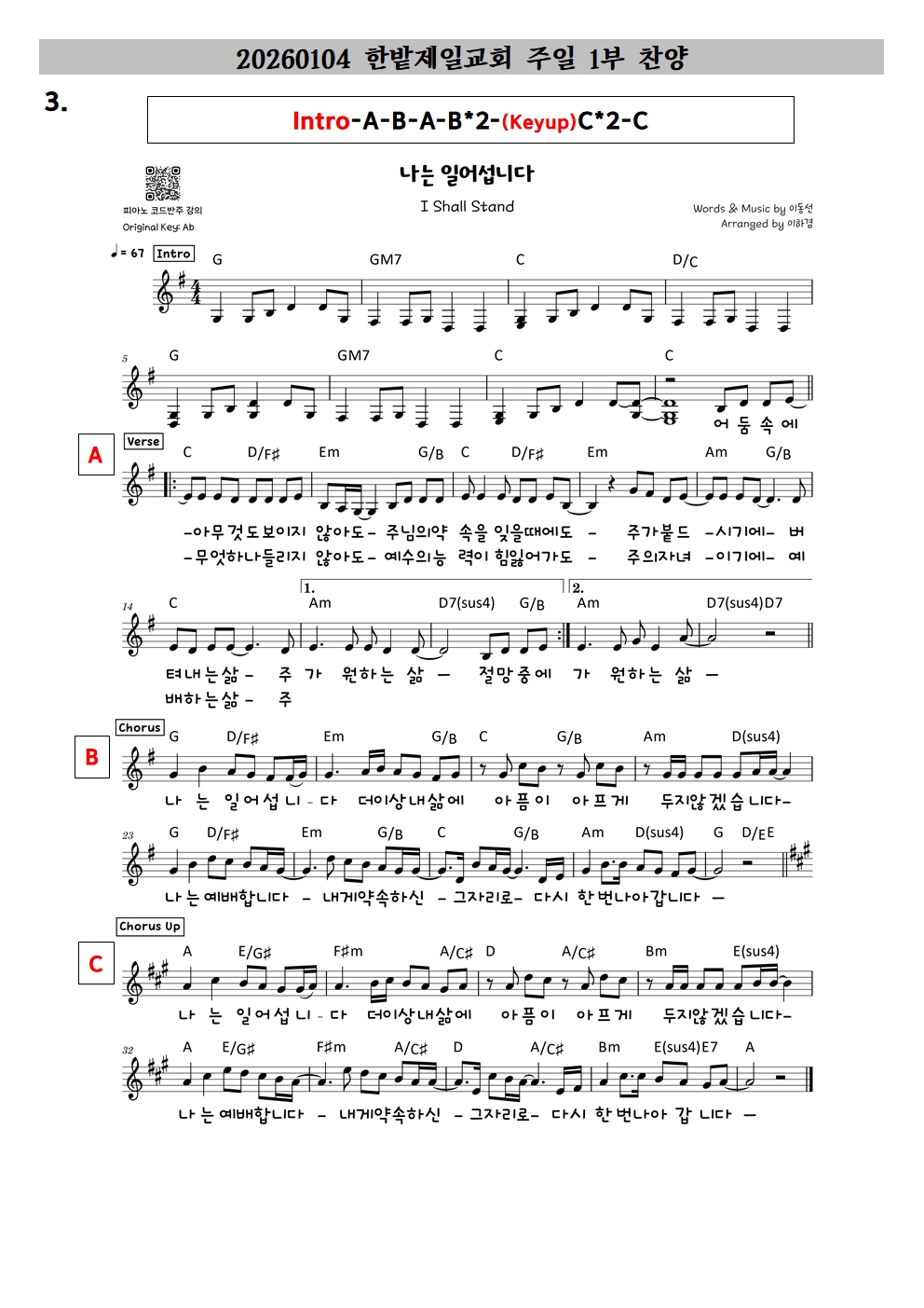 안녕하세요. 2026년부터 주일 1부 찬양 인도를 섬기게 된 고성주 목사 입니다. 부족한 저를 찬양인도의 자리로 세우시고 이끌어주신 주님께 감사와 영광을 돌려드립니다. 2026년 새해 찬양을 콘티를 준비하며, 하나님께서 주신 은혜를 나누고자 합니다.