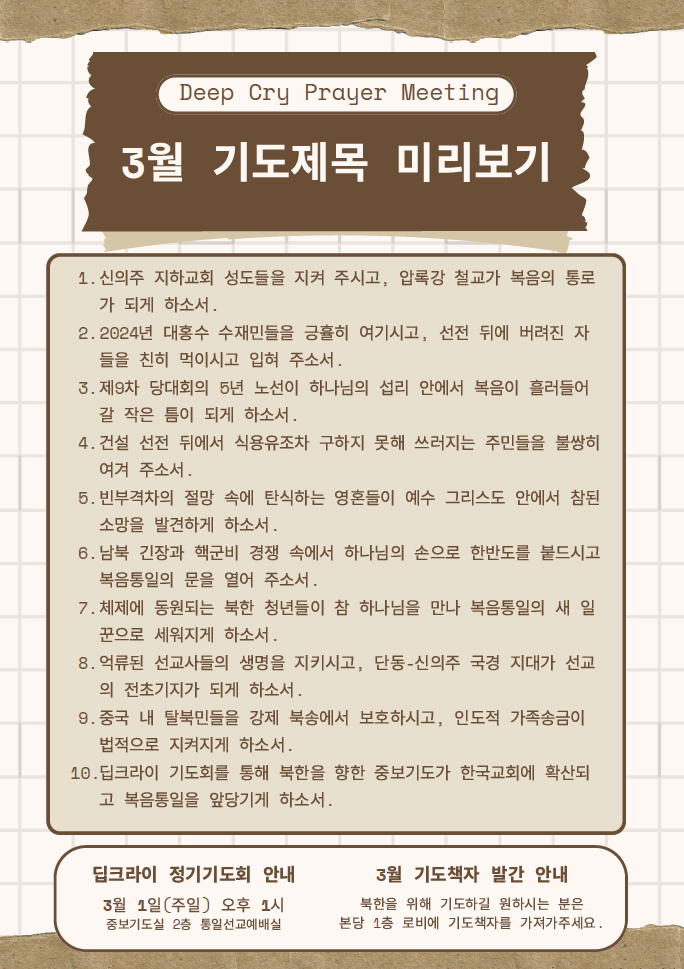 딥크라이 기도회 3월 기도제목