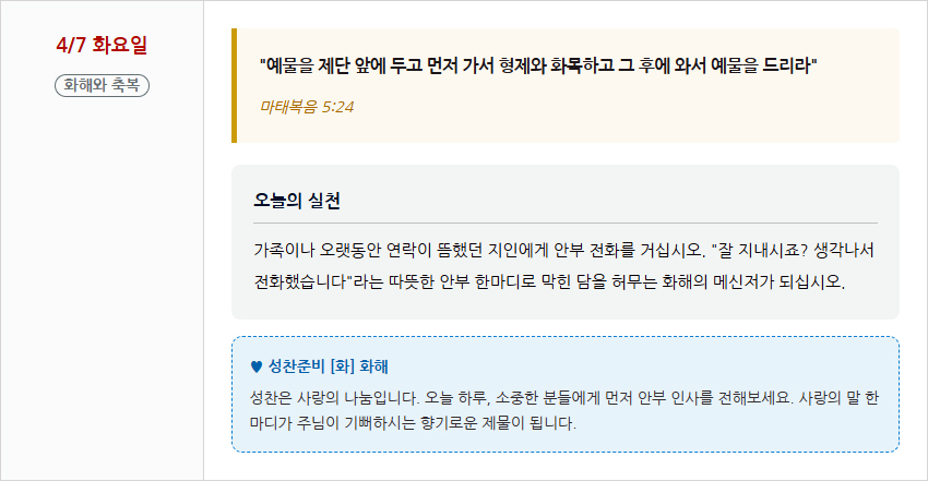 4/7 화요일 - 화해와 축복